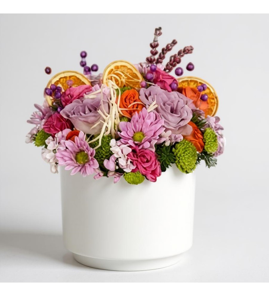 Romantik bir jest yapmak ve sevdiklerinizin yüzünü güldürmek mi istiyorsunuz? Beyaz saksı içerisinde zarifçe düzenlenmiş Beyaz Saksıda Lila Gül Aranjmanı ve Hüsnüyusuf ile sevginizi en güzel şekilde ifade edebilirsiniz. Bu özenle hazırlanmış çiçek tasarımı, özel günlerinizde veya sıradan bir günü unutulmaz kılmak için ideal.