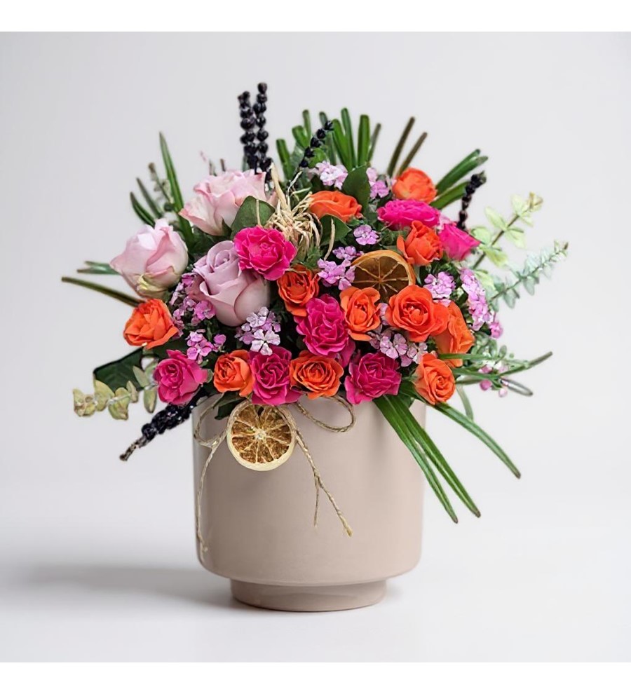 Romantik bir jest yapmak ve sevdiklerinizin yüzünü güldürmek mi istiyorsunuz? Beyaz saksı içerisinde zarifçe düzenlenmiş Gri Saksıda Gül Bahçesi ile sevginizi en güzel şekilde ifade edebilirsiniz. Bu özenle hazırlanmış çiçek tasarımı, özel günlerinizde veya sıradan bir günü unutulmaz kılmak için ideal.