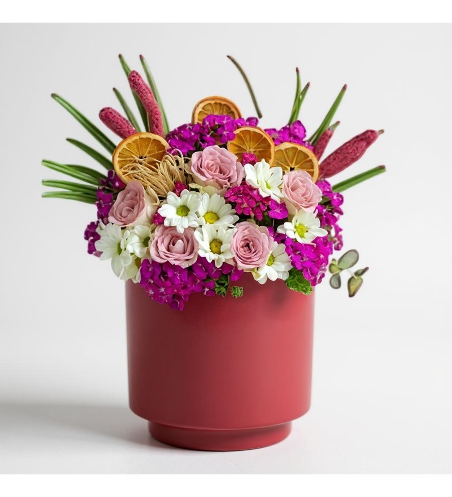 Romantik bir jest yapmak ve sevdiklerinizin yüzünü güldürmek mi istiyorsunuz? Beyaz saksı içerisinde zarifçe düzenlenmiş Mürdüm Saksıda Bahar ile sevginizi en güzel şekilde ifade edebilirsiniz. Bu özenle hazırlanmış çiçek tasarımı, özel günlerinizde veya sıradan bir günü unutulmaz kılmak için ideal.
