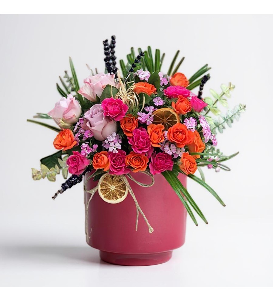 Romantik bir jest yapmak ve sevdiklerinizin yüzünü güldürmek mi istiyorsunuz? Beyaz saksı içerisinde zarifçe düzenlenmiş Mürdüm Saksıda Gül Bahçesi ile sevginizi en güzel şekilde ifade edebilirsiniz. Bu özenle hazırlanmış çiçek tasarımı, özel günlerinizde veya sıradan bir günü unutulmaz kılmak için ideal.