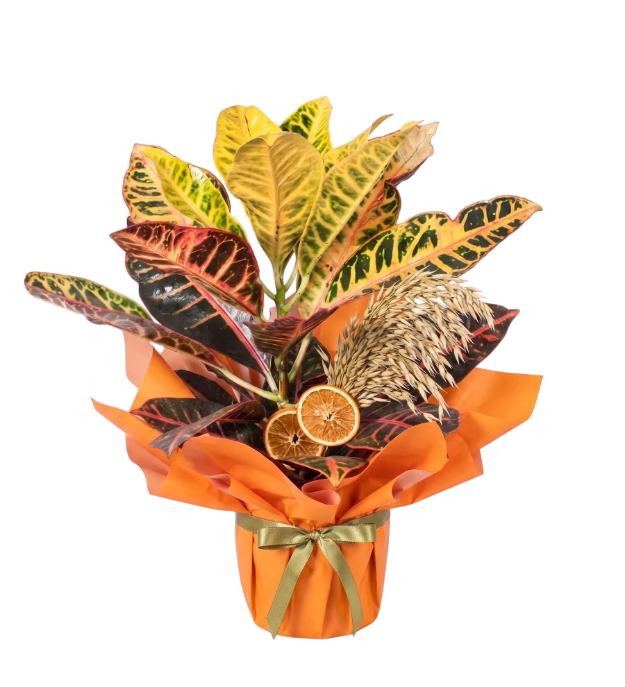 Evinizde veya ofisinizde monotonluğa yer yok! Kroton bitkisi, alışılagelmiş yeşil bitkilerin aksine, ateş tonlarındaki yapraklarıyla girdiği her ortamın enerjisini anında yükseltir. Her yaprağı kendine has deseniyle bir sanat eseri kadar eşsizdir.