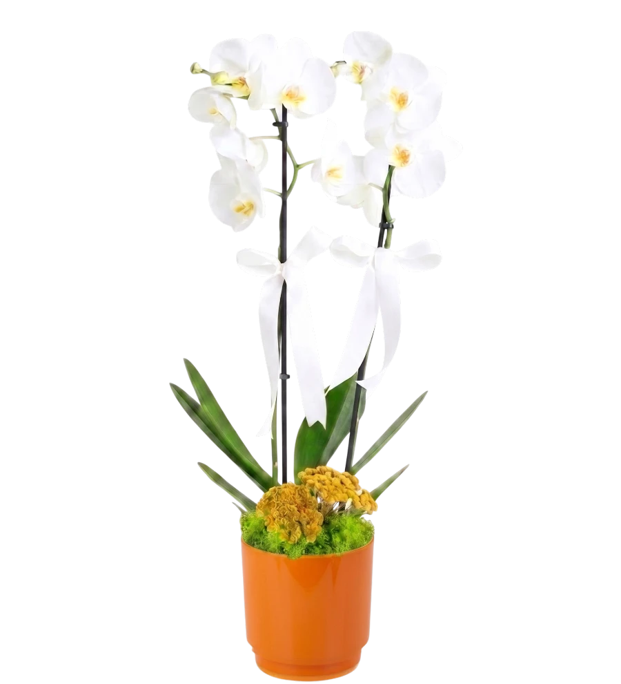Turuncu Saksıda Beyaz Orkide