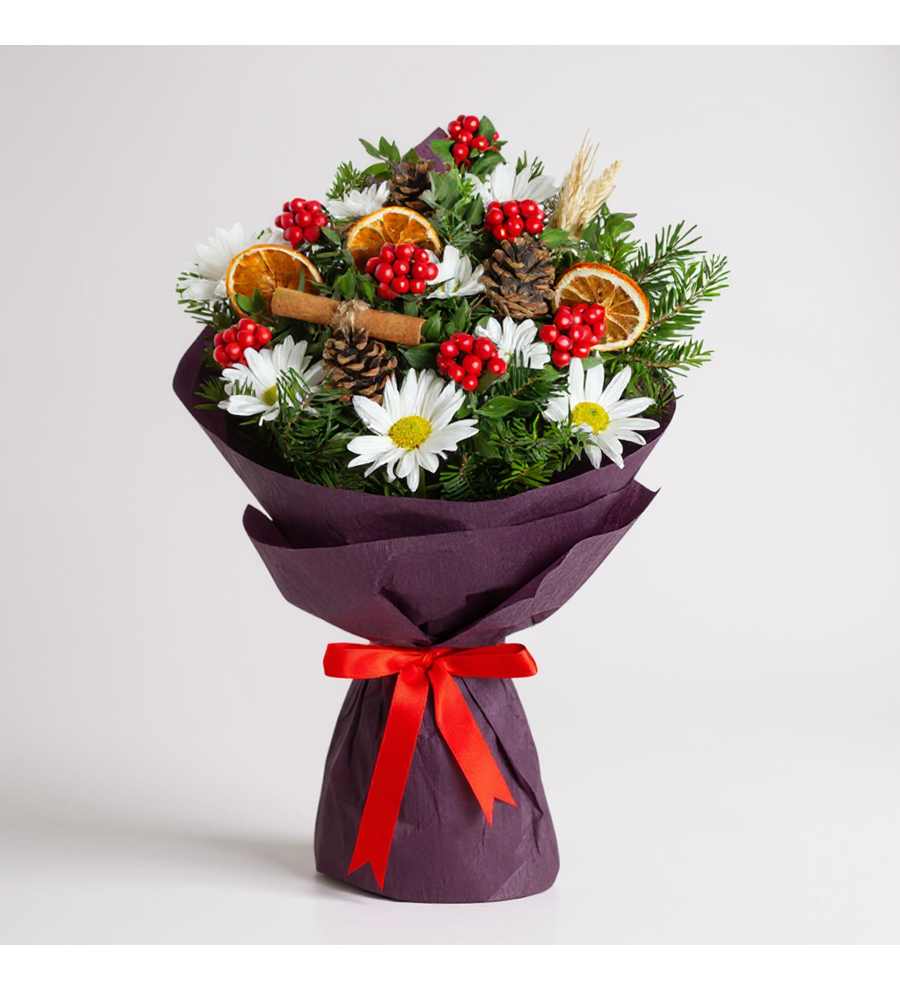 Yeni yıla şans, mutluluk ve bereket dolu bir başlangıç yapın! En taze dallardan özenle hazırlanan bu Yılbaşı Kokina Buketi, geleneksel kırmızı meyveleri ve canlı yeşil yapraklarıyla kış mevsiminin tüm coşkusunu evinize taşıyor.