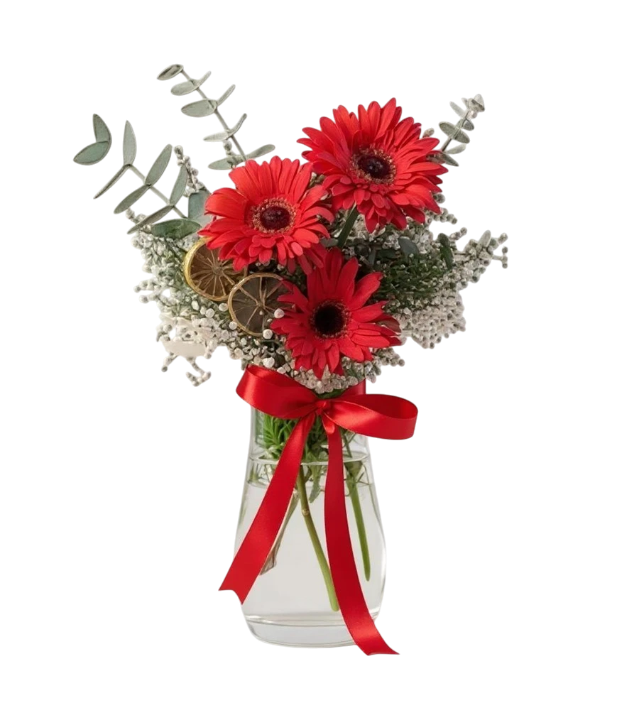 Romantik bir jest yapmak ve sevdiklerinizin yüzünü güldürmek mi istiyorsunuz? Silindir cam vazo içerisinde zarifçe düzenlenmiş Vazoda Kırmızı Gerbera ile sevginizi en güzel şekilde ifade edebilirsiniz. Bu özenle hazırlanmış çiçek tasarımı, özel günlerinizde veya sıradan bir günü unutulmaz kılmak için ideal.