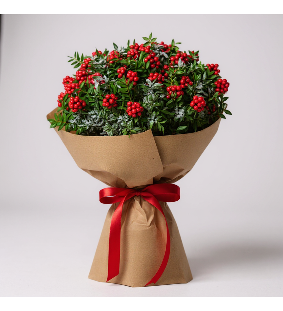 Yeni yıla şans, mutluluk ve bereket dolu bir başlangıç yapın! En taze dallardan özenle hazırlanan bu Yılbaşı Kokina Buketi, geleneksel kırmızı meyveleri ve canlı yeşil yapraklarıyla kış mevsiminin tüm coşkusunu evinize taşıyor.